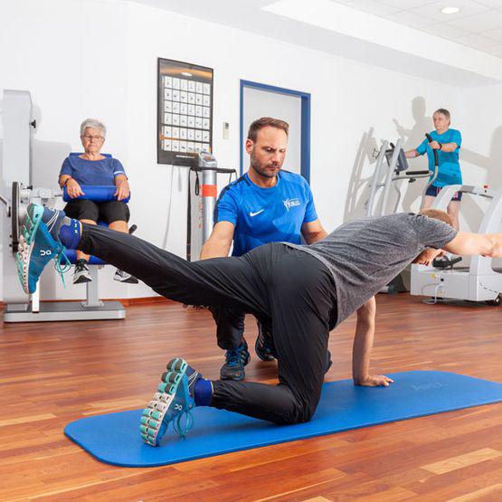 Die Krankengymnastik (KG) ist eine aktive Behandlungsmethode zur Verbesserung Ihrer Körperfunktionen wie Kraft, Beweglichkeit und Ausdauer. Durch unsere individuelle Betreuung wird gezielt auf Ihre Bedürfnisse eingegangen.